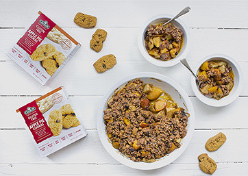 Pečico segrejemo na 180 °C in naoljimo pekač. V večji posodi združimo jabolka, hruške, drobtine in cimet. Dobro premešamo in zmes prelijemo v pekač. Pečemo 10 minut. Med tem pripravimo drobljenec. Piškote čim bolj zdrobimo ter dodamo sladkor in stopljeno margarino. Pekač nato vzamemo iz pečice in porazdelimo drobljenec. Postavimo nazaj v pečico in pečemo 15 - 20 minut. Po želji drobljenec serviramo s smetano ali sladoledom.